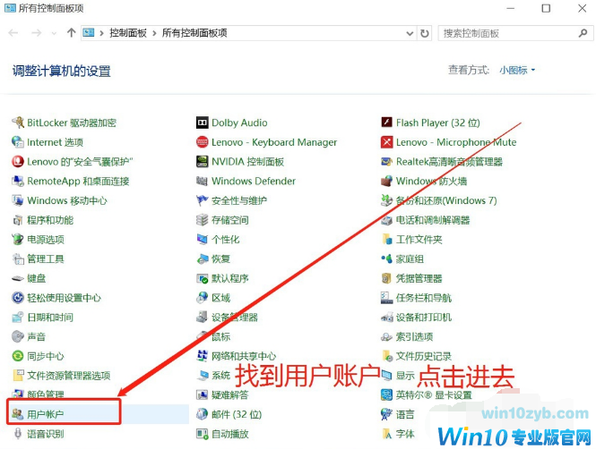 进到控制面板,点击“用户账户”