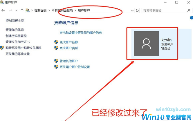 改完后默认会返回到用户账户界面,名称已经修改过来了。