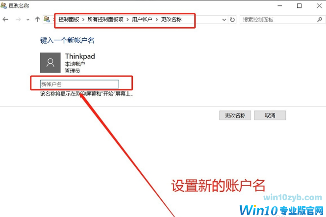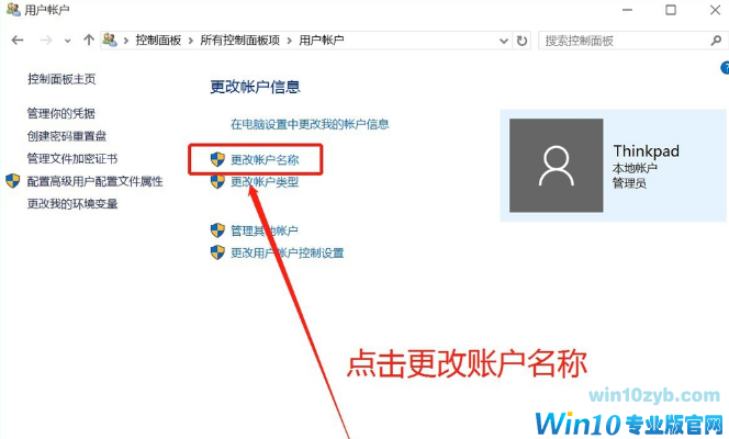 弹出用户账户界面,点击“更改账户名称”