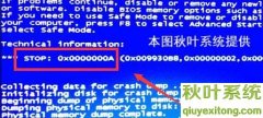 蓝屏代码“0x000000a”环境不正确 如何办? 电脑出现蓝屏代码为sTop:0x0000000A,这是如何回事?出现这种问题是的原因是系统环境不正确而导致的。下面大地系统主编教大家蓝屏代码0x000000a的处理办法。 上图是蓝屏0x0000000A故障显示画面。下面就来分析原因.....