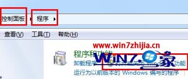 1、鼠标左键双击桌面上“计算机”--->打开“控制面板”--->双击“程序”,然后点击“打开或关闭windows功能”;