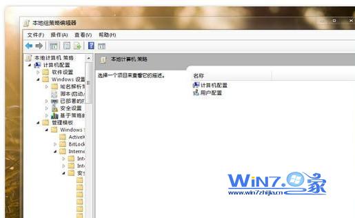 2、然后在本地组策略编辑器窗口中依次展开“计算机配置--管理模版--windows组件--internet Explorer--安全功能--限制文件下载”选项,在窗口的右侧双击“internet Explorer进程”;