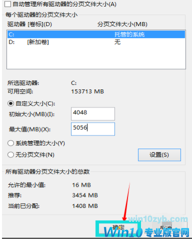 6.内存大小的配置一般为计算机物理内存的1.5-2倍即可,配置完毕后点击确认并重启电脑即可。