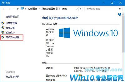2、在“系统”窗口左边栏选择“高级系统配置”,如下图——