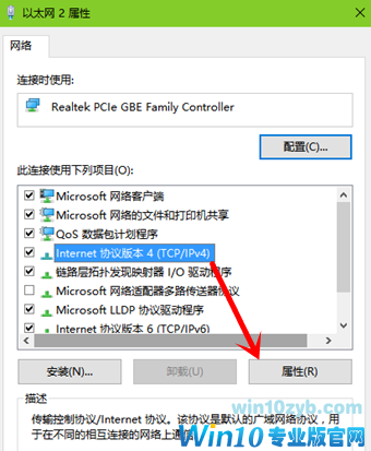 3.接着点击internet协议版本4,点击属性按钮打开。